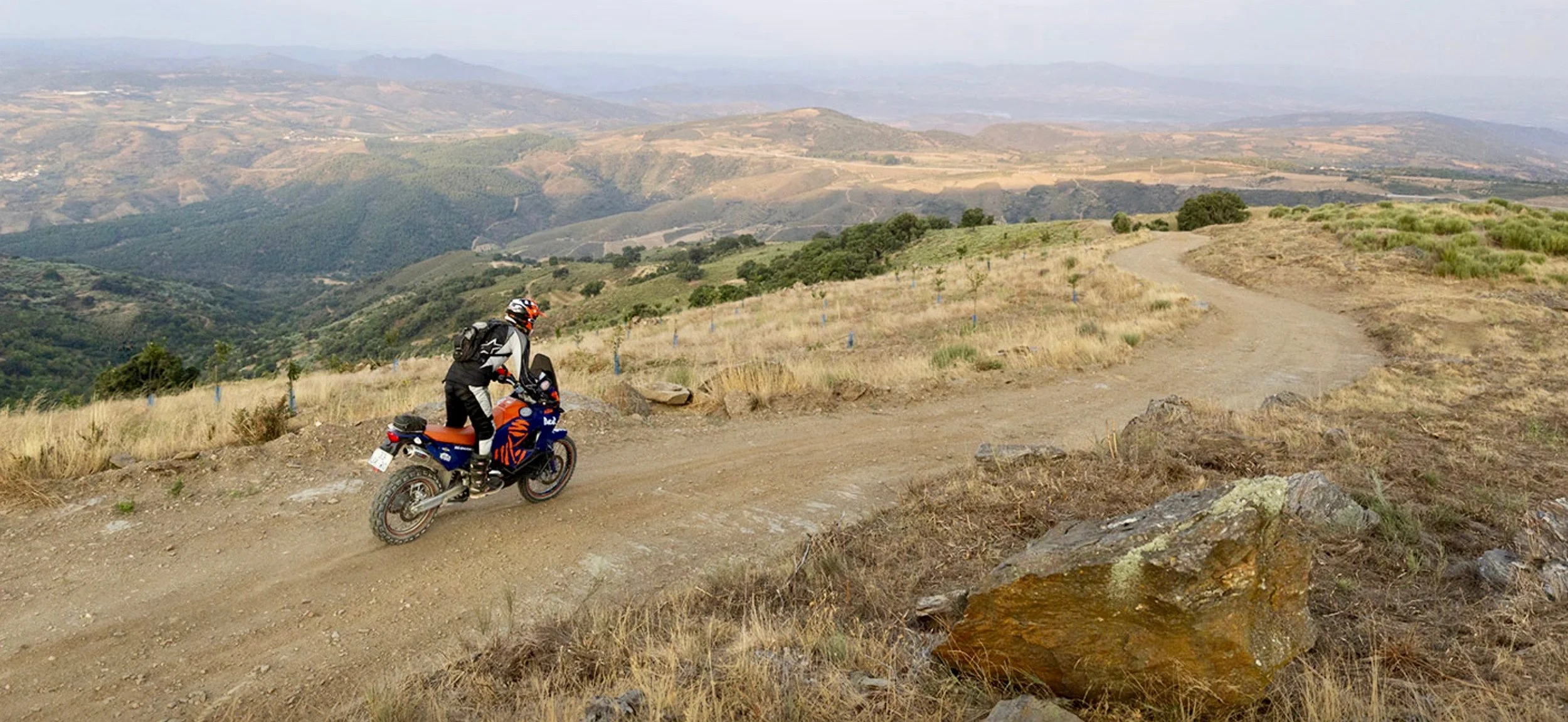 If you’re seeking a unique and diverse ‘adventure ride’, look no further. Drift Moto and RF Adventure Tours have teamed up to create ‘Spinal Track’ - a 5 day adventure / enduro ride, north to south through the varied terrain of our ‘home’, Portugal, running more or less parallel with the Spanish border. Starting in the fortified stronghold of Braganca in Portugal’s far north east, we ride directly south towards the Serra de Estrela mountains, through the cattle country of the Alentejo, before reaching the Serra do Caldeirão mountains which span the Algarve, finally arriving in Moncarapacho and our ride HQ.